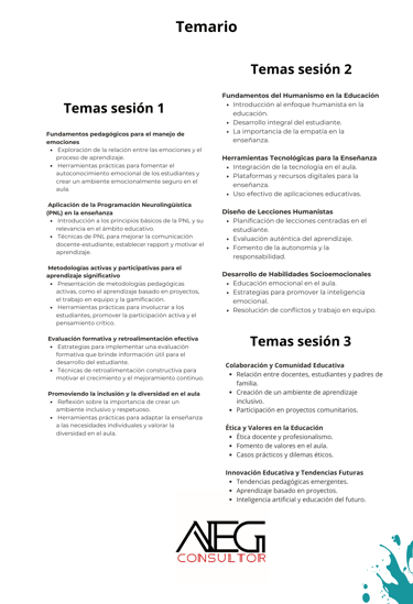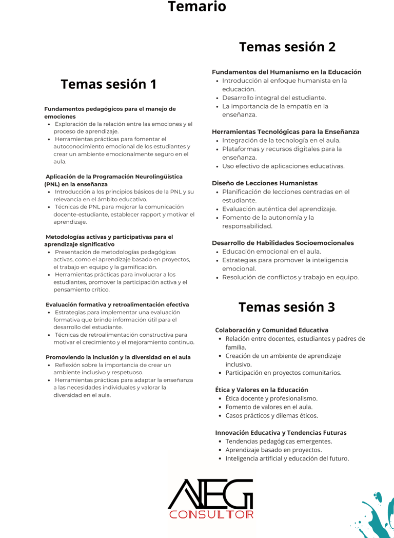El taller busca proporcionar a los docentes, tanto experimentados como jóvenes, las habilidades y conocimientos necesarios para fortalecer su práctica pedagógica desde un enfoque humanista, promoviendo un ambiente de aprendizaje inclusivo y centrado en el desarrollo integral de los estudiantes. Además, busca actualizar a los participantes en las últimas tendencias educativas y en el uso efectivo de la tecnología en el aula.